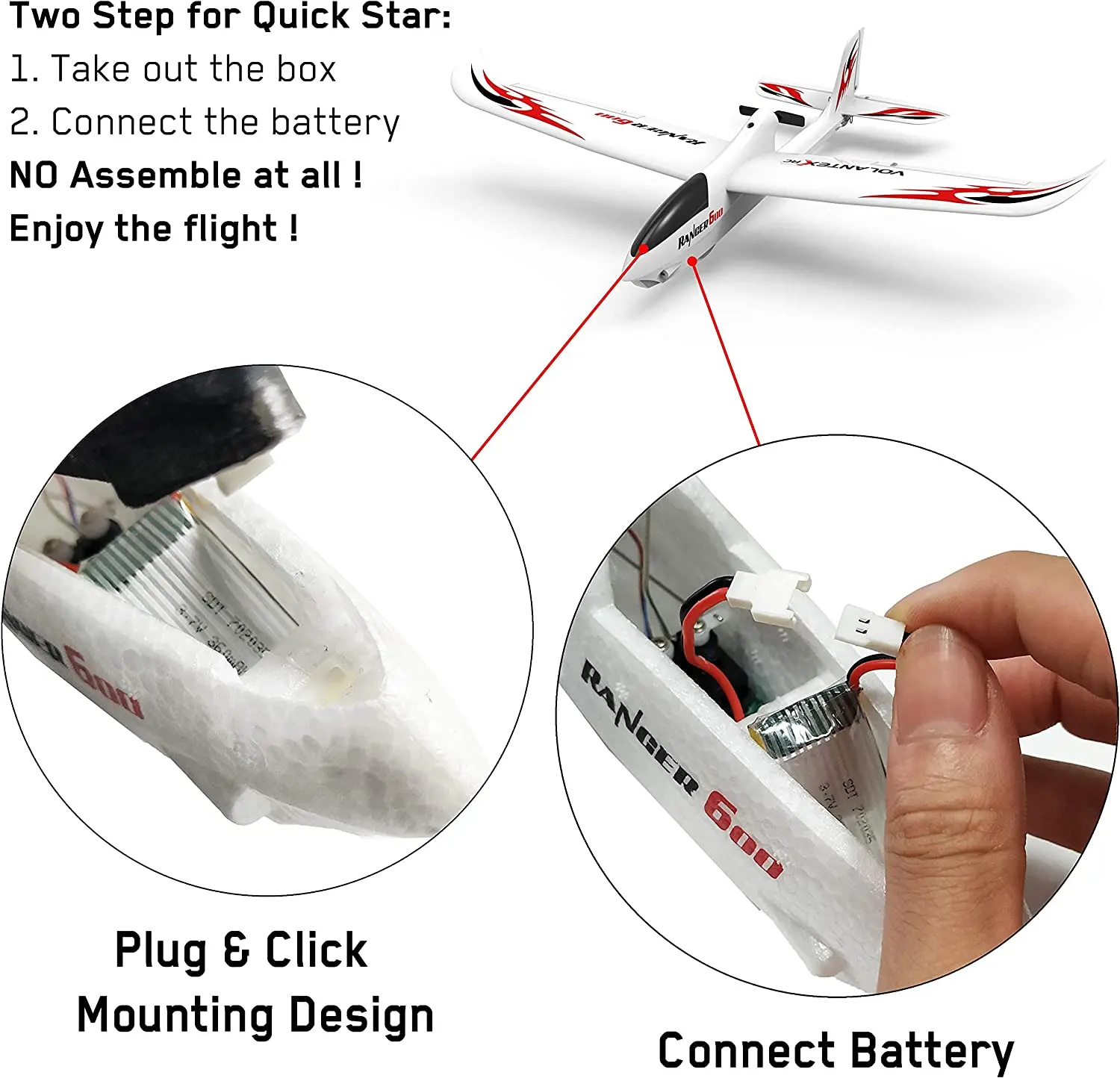 Avec un poids de décollage de 60g et une batterie lithium de 3.7V 400mAh, cet avion permet des vols de 10 à 20 minutes. Sa télécommande 2.4GHz à 3 canaux offre un contrôle précis jusqu’à une distance de 200 mètres. Adapté aux niveaux de compétence du débutant à l’expert, cet avion offre une fonctionnalité de retour automatique pour plus de sécurité.