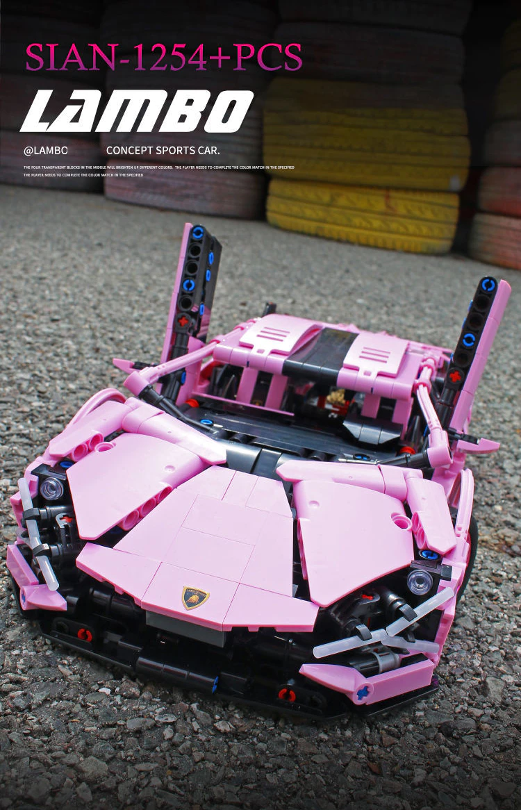 ● Nom du modèle de blocs : Lamborghini Sian 1:14 +11289 Pcs Rose compatible avec briques LEGO Technic
